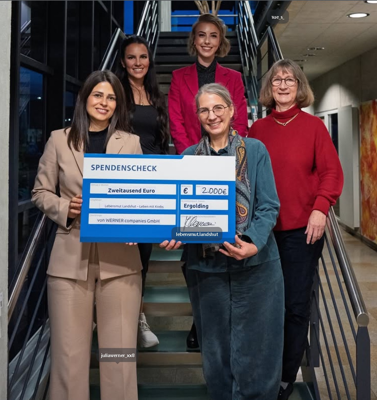 Sing- und Spielgruppe in Leberskirchen, einem Ort mit ca. 70 Familien von ca. 10 Frauen durch Aktionen wie Kletznklopfarin, Nikolausabende oder einen Glühweinstand 3.800 € an Spenden gesammelt wurden, welche je zur Hälfte an Lebensmut und Stille Hilfe gingen.